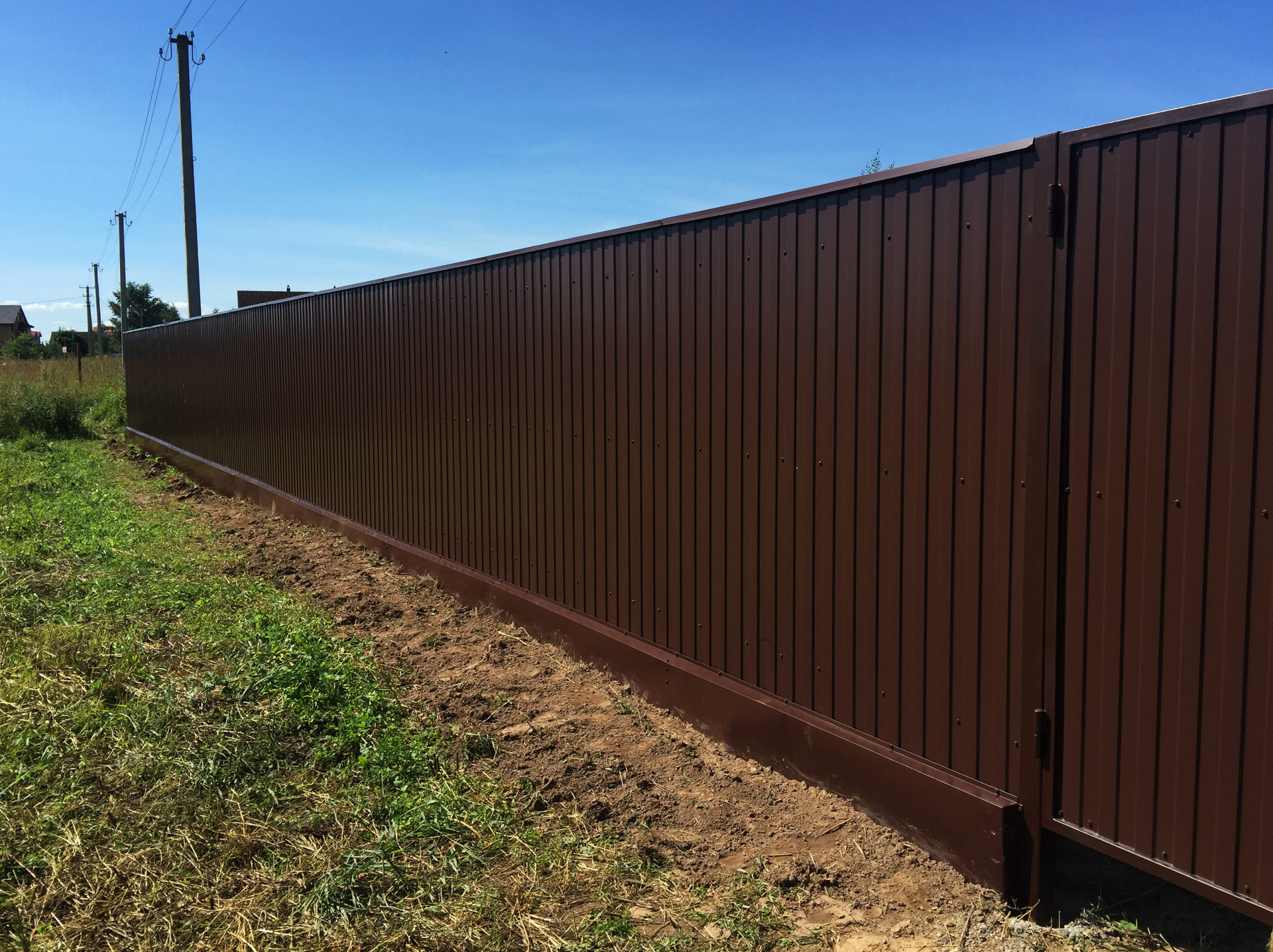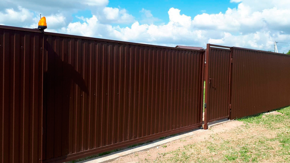 Для участков не более 10 соток подойдет забор из евроштакетника, а для более обширных территорий идеально подойдет ограждение из профнастила (металлопрофиля).